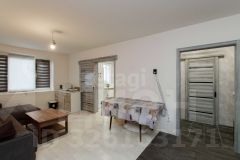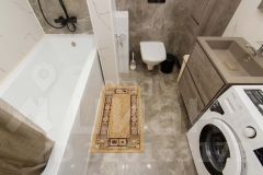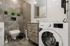В квартире сделана современная отделка. Совмещенный санузел с красивой плиткой, практичная плитка на полу в прихожей и на кухне.