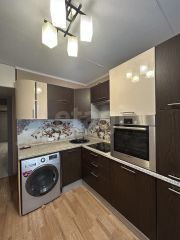 Кухонный гарнитур с техникой BOCH и стиральная машина LG остаётся в помощь новым хозяевам.