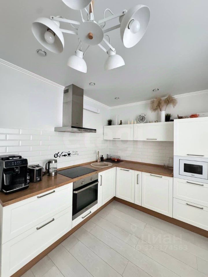 В квартире выполнен качественный ремонт в светлых тонах. Просторная кухня-гостиная, 2 спальни и комната для гостей. Санузел совмещенный, установлена качественная сантехника и водонагреватель. Высота потолков 2.75 м.