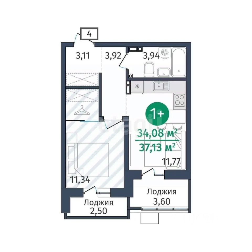 КВАРТИРА: площадь 39 м² Просторная кухня-гостиная, комфортная спальня, вместительный санузел. И отличная улучшеная черновая отделка от застройщика.