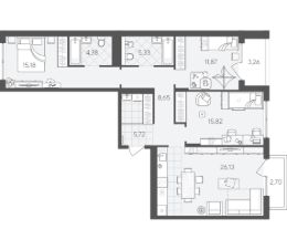 Трёхкомнатная квартира 99.04 кв.м на 2 этаже — отличный выбор для семьи. Большая часть квартиры отведена под личное пространство и включает 3 просторные спальни.