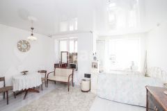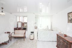 Квартира выполнена в светлых тонах, что создает атмосферу легкости и простора. Элегантный натяжной глянцевый потолок и стильный светло-серый ламинат придают помещению современный вид. В ванной комнате вас ждет керамо-гранит, акриловая ванна и современная инсталяция — всё для вашего удобства и комфорта.