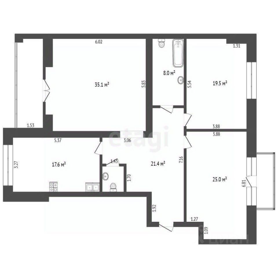- Два сан.узла ( один из которых полноценная ванная комната с санузлом), второй гостевой.
