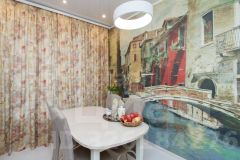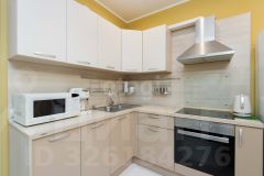 При продаже остается кухонный гарнитур со встроенной техникой, холодильник, стиральная машинка, встраемые шкафы.