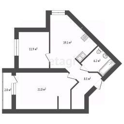Предлагаем к продаже просторную квартиру формата 2+ в новом кирпичном доме 2017 года постройки.