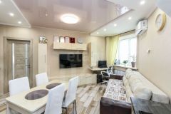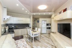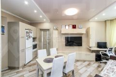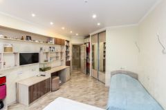 В квартире сделан современный дизайнерский ремонт. При продаже остаются : кухонный гарнитур, два шкафа-купе, рабочая зона в детской комнате.