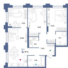 Продаётся 4-комнатная квартира в сданном доме (Тимофея Чаркова, 93 (ГП-9 Юпитер)), срок сдачи: III-кв. 2025, общей площадью 89.96 кв.м., на 4 этаже. Проект микрорайона "Звездный городок" представляет собой застройку, состоящую из кирпичных зданий переменной этажности.