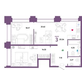 Продаётся 3-комнатная квартира в сданном доме (Тимофея Чаркова, 93 (ГП-9 Юпитер)), срок сдачи: III-кв. 2025, общей площадью 59.34 кв.м., на 29 этаже. Проект микрорайона "Звездный городок" представляет собой застройку, состоящую из кирпичных зданий переменной этажности.