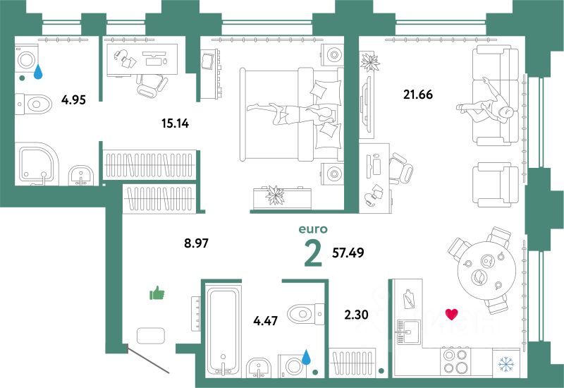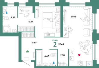 Продаётся 2-комнатная квартира в сданном доме (Тимофея Чаркова, 93 (ГП-9 Юпитер)), срок сдачи: III-кв. 2025, общей площадью 57.49 кв.м., на 11 этаже. Проект микрорайона "Звездный городок" представляет собой застройку, состоящую из кирпичных зданий переменной этажности.