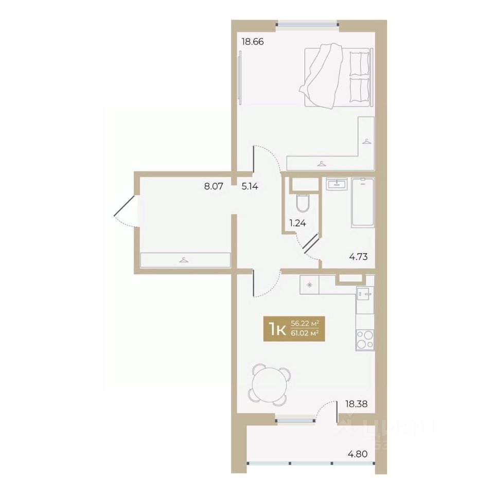Продаётся 1-комнатная квартира в строящемся доме (Дом 5), срок сдачи: I-кв. 2026, общей площадью 56.22 кв.м., на 5 этаже. Новый жилой комплекс "Спутник-2" от специализированного застройщика "Спутник-2" расположен по адресу: г. Тюмень, по ул. Алматинская.