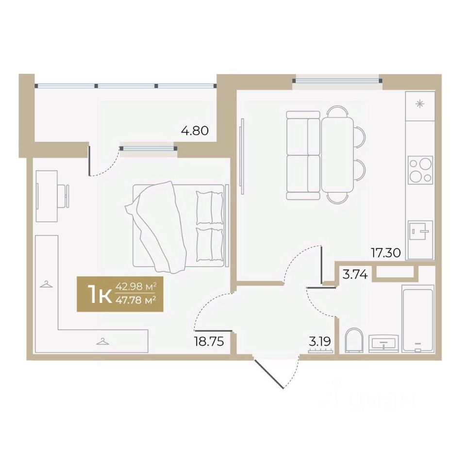 Продаётся 1-комнатная квартира в строящемся доме (Дом 5), срок сдачи: I-кв. 2026, общей площадью 42.98 кв.м., на 7 этаже. Новый жилой комплекс "Спутник-2" от специализированного застройщика "Спутник-2" расположен по адресу: г. Тюмень, по ул. Алматинская.