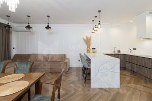 Планировка: 2 большие спальни (одна с гардеробной), кухня-гостиная 40 м², раздельный санузел.
