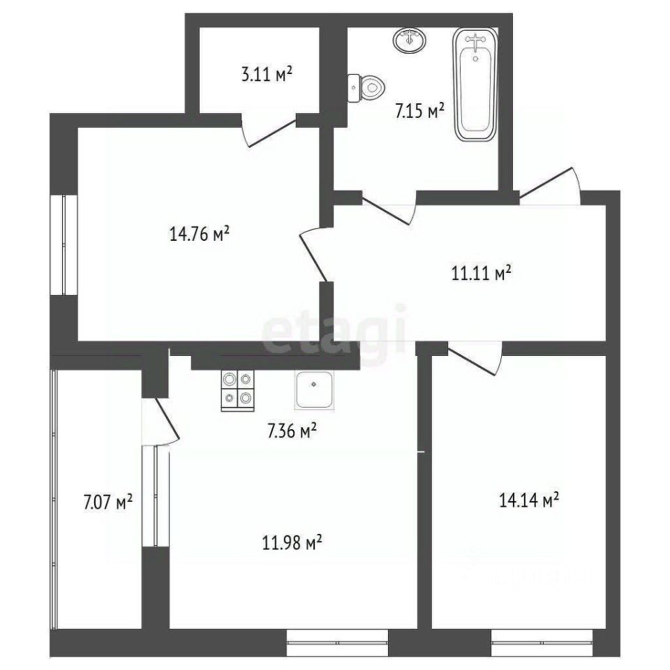 Продам замечательную квартиру формата 2+, 76.3 м² от нaдeжногo зaстpoйщикa Инкo и К.