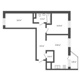 С двумя спальнями и большой кухней гостиной 24 кв.м. также в квартире два сан узла.