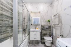Просторная кухня-гостиная и спальная комната, в которой расположена вместительная гардеробная. На кухне установлен кухонный гарнитур с встроенной техникой (Варочная панель, духовой шкаф, вытяжка, посудомоечная машина, микроволновая печь). Мягкая мебель, кондиционер, текстиль, освещение, встроенный шкаф-купе все это остается при продаже. Санузел выполнен кафелем, установлена качественная сантехника, инсталляция с унитазом. Квартира полностью готова для комфортного проживания.