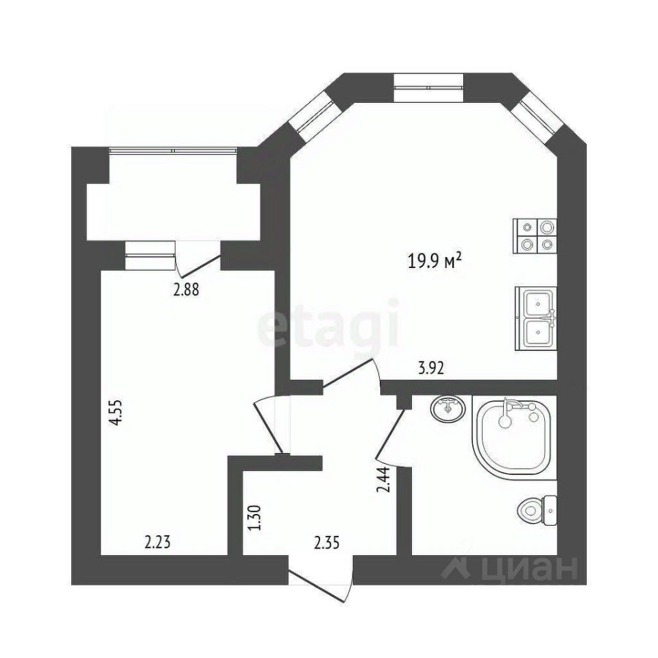 Формат "1+" — полноценная спальня и большая кухня-гостиная