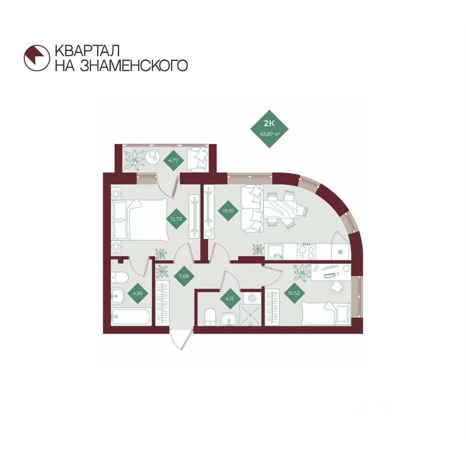 Продаётся 2-комнатная квартира в строящемся доме (2 очередь), срок сдачи: I-кв. 2027, общей площадью 63.87 кв.м., на 11 этаже. "Квартал на Знаменского" - новый жилой комплекс от компании "СтоунСтрой", расположенный по адресу: Тюменская обл., г. Тобольск, ул. 3Б микрорайон, 6Бк2.