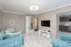 Во всех помещениях квартиры натяжные потолки с встроенными светильниками, на стенах обои, в сан узле плитка отличного качества.