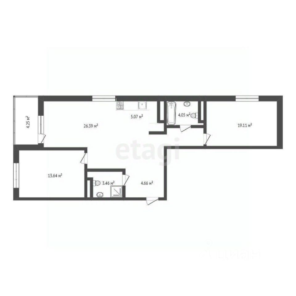 Евро формат. Просторная кухня-гостиная, изолированные спальни и мастер-спальни.