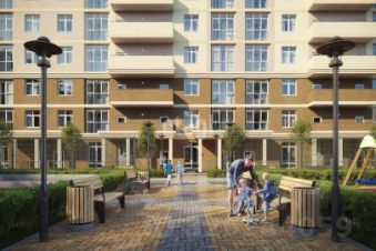 Дом в новом жилом комплексе - это ансамбль из трех 19-этажных зданий, объединенных между собой стилобатом - общей торговой галереей, где будут расположены помещения под бизнес.