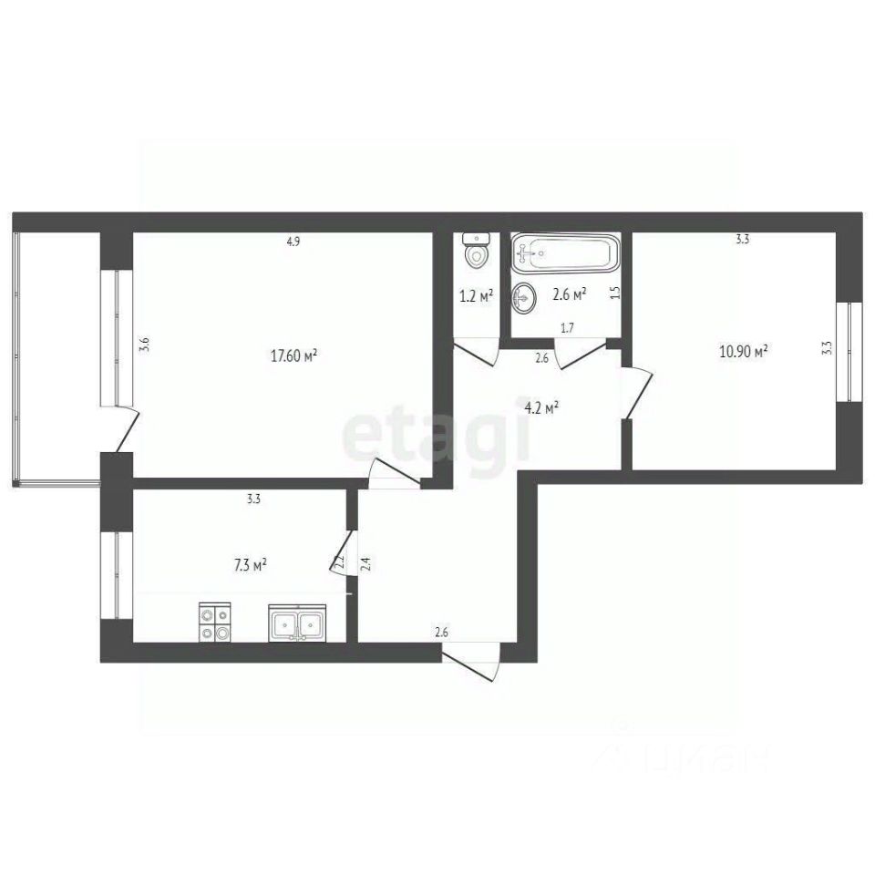 Обратите внимание на планировку-распашонку, есть возможность реализовать кухню-гостиную!