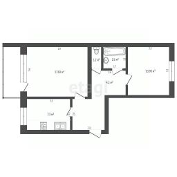 -Размеры: общая площадь 51,3 кв.м, площадь кухни 7 кв.м