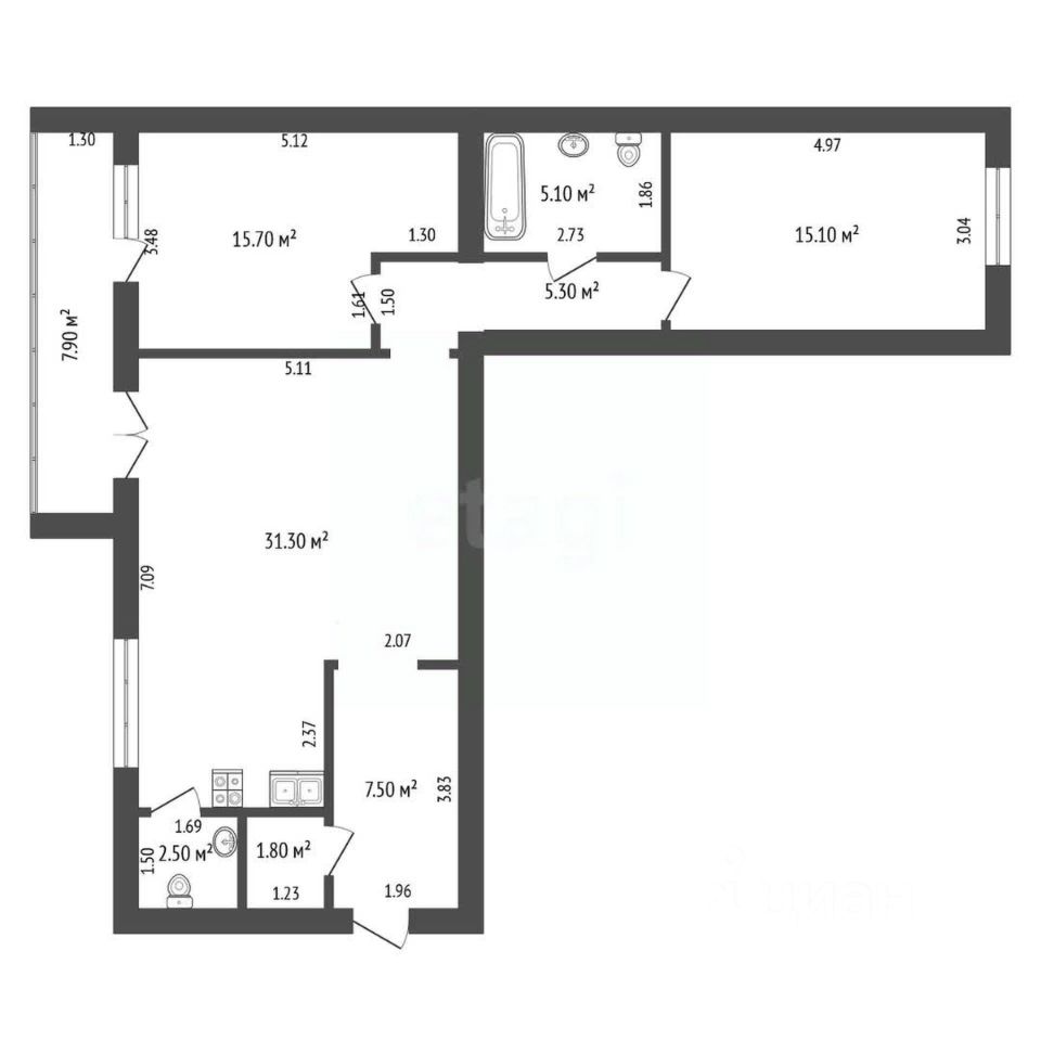 Квартира 2+ (евро-трёшка) с невероятно удобной планировкой. Главное место в квартире - просторная кухня-гостиная 31,3 кв.м. и второй дополнительный санузел площадью 1,8 кв.м, который можно оборудовать под второй совмещённый санузел, под постирочную, под гардеробную или сделать перепланировку и присоединить эту площадь к спальне.