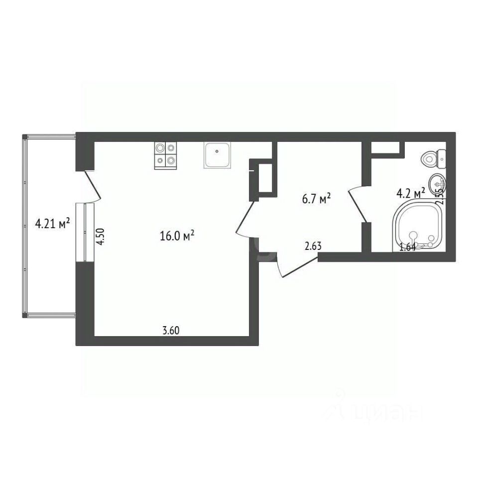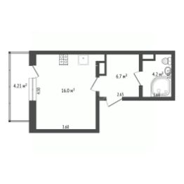 - Совмещенный санузел общей площадью 4,2 м² оборудован всеми необходимыми удобствами.