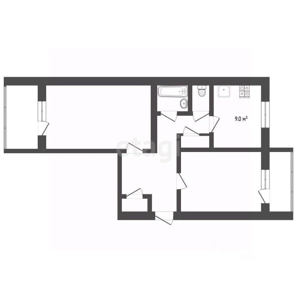 Планировка: Удобная изолированная планировка ("распашонка") с квадратной прихожей.