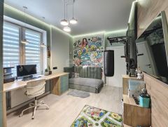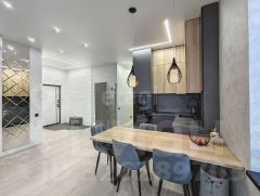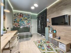 Просторная квартира, где кухня-гостиная функционально разделена на зону гостевую и зону кухни, больше не надо выбирать, что для вас важнее, вы можете с легкостью использовать это помещение по разным назначениям. Просторная спальня, детская комната, уже обустроенная для двух деток, функциональная ванная комната и своя кладовая-постирочная - всё что нужно для комфортного проживания семьи. Бонусом для покупателей будет свежий современный ремонт и укомплектованная мебелью квартира.