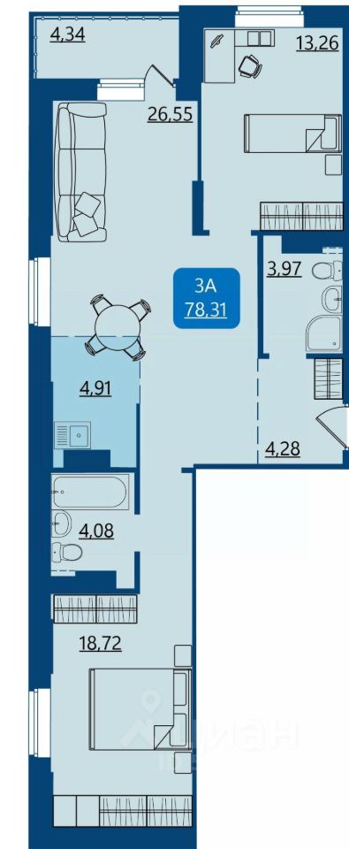 Продаётся 3-комнатная квартира в строящемся доме (ГП-1 сек. В1), срок сдачи: IV-кв. 2027, общей площадью 78.31 кв.м., на 3 этаже. Новый проект идеально подходит для комфортного проживания: рядом находится исторический центр (всего 5 мин. езды), благоприятная экология у набережной реки, удобная транспортная доступность.