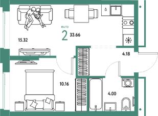 Продаётся 2-комнатная квартира в строящемся доме (Дом "Инновационный" (ГП-24)), срок сдачи: IV-кв. 2026, общей площадью 33.66 кв.м., на 15 этаже. Новый микрорайон "Домашний" от группы компаний "Страна Девелопмент" расположен в Калининском округе Тюмени, в районе аэропорта "Плеханово".