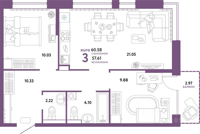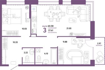 Продаётся 3-комнатная квартира в строящемся доме (Дом "Гостеприимный" (ГП-15)), срок сдачи: I-кв. 2026, общей площадью 60.58 кв.м., на 7 этаже. Новый микрорайон "Домашний" от группы компаний "Страна Девелопмент" расположен в Калининском округе Тюмени, в районе аэропорта "Плеханово".