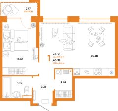 Продаётся 1-комнатная квартира в строящемся доме (Дом "Гостеприимный" (ГП-15)), срок сдачи: I-кв. 2026, общей площадью 49.3 кв.м., на 5 этаже. Новый микрорайон "Домашний" от группы компаний "Страна Девелопмент" расположен в Калининском округе Тюмени, в районе аэропорта "Плеханово".