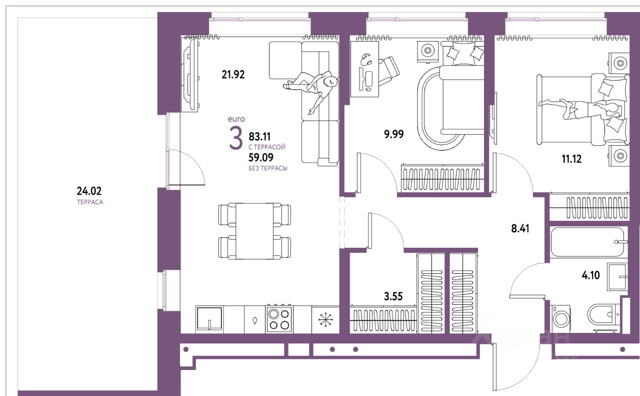 Продаётся 3-комнатная квартира в строящемся доме (Дом "Художественный" (ГП-17)), срок сдачи: I-кв. 2026, общей площадью 83.11 кв.м., на 12 этаже. Новый микрорайон "Домашний" от группы компаний "Страна Девелопмент" расположен в Калининском округе Тюмени, в районе аэропорта "Плеханово".