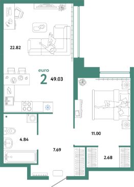 Продаётся 2-комнатная квартира в сданном доме (Кореневского, 5 (Дом "Центральный" ГП-12)), срок сдачи: I-кв. 2025, общей площадью 49.03 кв.м., на 2 этаже. Новый микрорайон "Домашний" от группы компаний "Страна Девелопмент" расположен в Калининском округе Тюмени, в районе аэропорта "Плеханово".