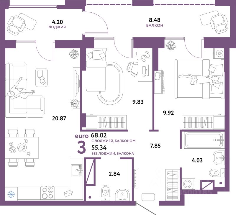 Продаётся 3-комнатная квартира в сданном доме (Кореневского, 5 (Дом "Центральный" ГП-12)), срок сдачи: I-кв. 2025, общей площадью 68.02 кв.м., на 10 этаже. Новый микрорайон "Домашний" от группы компаний "Страна Девелопмент" расположен в Калининском округе Тюмени, в районе аэропорта "Плеханово".