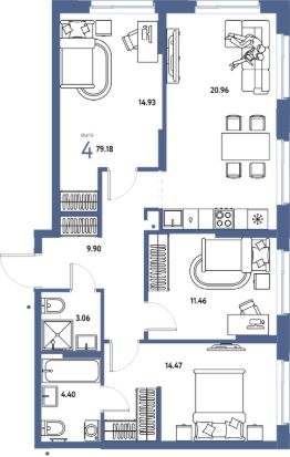 Продаётся 4-комнатная квартира в строящемся доме (Дом "Креативный" (ГП-20)), срок сдачи: IV-кв. 2026, общей площадью 79.18 кв.м., на 12 этаже. Новый микрорайон "Домашний" от группы компаний "Страна Девелопмент" расположен в Калининском округе Тюмени, в районе аэропорта "Плеханово".