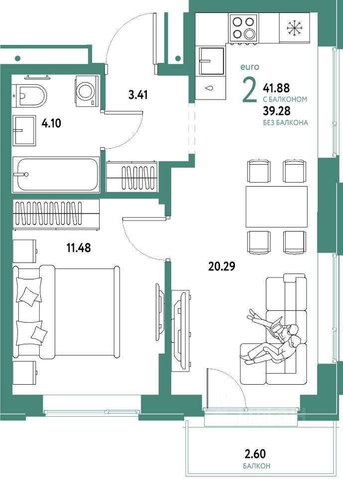 Продаётся 2-комнатная квартира в строящемся доме (Дом "Креативный" (ГП-20)), срок сдачи: IV-кв. 2026, общей площадью 41.88 кв.м., на 2 этаже. Новый микрорайон "Домашний" от группы компаний "Страна Девелопмент" расположен в Калининском округе Тюмени, в районе аэропорта "Плеханово".