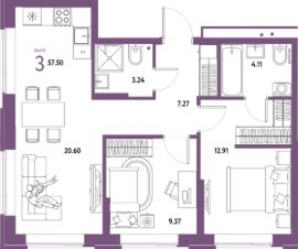 Продаётся 3-комнатная квартира в строящемся доме (Дом "Креативный" (ГП-20)), срок сдачи: IV-кв. 2026, общей площадью 57.5 кв.м., на 9 этаже. Новый микрорайон "Домашний" от группы компаний "Страна Девелопмент" расположен в Калининском округе Тюмени, в районе аэропорта "Плеханово".