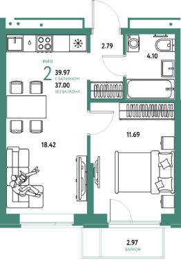 Продаётся 2-комнатная квартира в строящемся доме (Дом "Креативный" (ГП-20)), срок сдачи: IV-кв. 2026, общей площадью 39.97 кв.м., на 4 этаже. Новый микрорайон "Домашний" от группы компаний "Страна Девелопмент" расположен в Калининском округе Тюмени, в районе аэропорта "Плеханово".