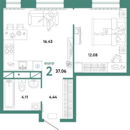 Продаётся 2-комнатная квартира в строящемся доме (Дом "Парковый" (ГП-13)), срок сдачи: I-кв. 2026, общей площадью 37.06 кв.м., на 5 этаже. Новый микрорайон "Домашний" от группы компаний "Страна Девелопмент" расположен в Калининском округе Тюмени, в районе аэропорта "Плеханово".