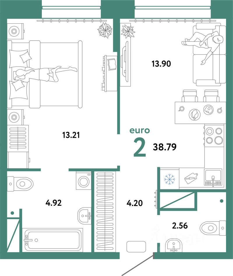 Продаётся 2-комнатная квартира в строящемся доме (Дом "Парковый" (ГП-13)), срок сдачи: I-кв. 2026, общей площадью 39.6 кв.м., на 2 этаже. Новый микрорайон "Домашний" от группы компаний "Страна Девелопмент" расположен в Калининском округе Тюмени, в районе аэропорта "Плеханово".