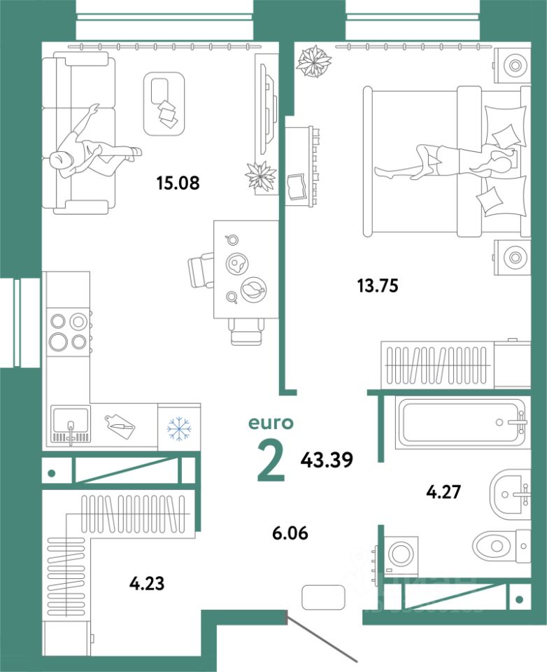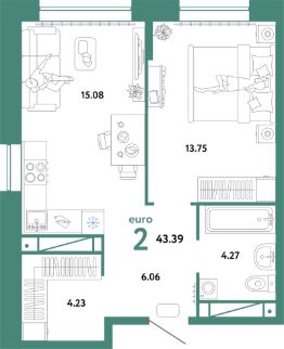 Продаётся 2-комнатная квартира в строящемся доме (Дом "Парковый" (ГП-13)), срок сдачи: I-кв. 2026, общей площадью 43.39 кв.м., на 12 этаже. Новый микрорайон "Домашний" от группы компаний "Страна Девелопмент" расположен в Калининском округе Тюмени, в районе аэропорта "Плеханово".