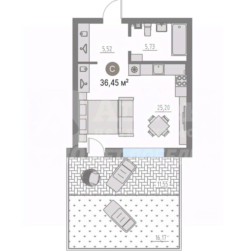 Рады представить вашему вниманию готовую квартиру-студию в живописном пригороде Тюмени, в северо-западном направлении, на расстоянии порядка 20 км. Это место, где городской ритм плавно сменяется спокойствием природы. Квартира площадью 36,2 кв.м., находится на 1 этаже 4-х этажного дома монолитно-каркасного исполнения, спроектированного архитекторами итальянского архитектурного бюро R+S. Квартира имеет ряд значительных преимуществ: просторную комнату, площадь которой позволит лаконично организовать кухонную зону, гостевую и зону для отдыха. высоту потолков более 3 м., что подчеркивает свободу внутреннего пространства. панорамные окна высотой 2,4 м., которые словно порталы в мир природы обеспечивают обилие естественного света в квартире. собственную террасу площадью 27,72 кв.м., которая станет продолжением вашего дома для радостных встреч с друзьями на свежем воздухе и позволит создать собственный мини-сад. улучшенную черновую отделку white box для возможности воплощения дизайнерских идей по приданию жилищу индивидуальности. Владельцев ждет приятный бонус - кладовая в подарок! В доме смонтирована система умного доступа в подъезды, что усиливает безопасность и гарантирует отсутствие посторонних. А комнаты для хранения колясок, велосипедов и мойка для лап домашних питомцев - подчеркивают удобство и комфорт для проживания. Местоположение дома - отдельное преимущество. Недалеко расположен природный памятник регионального значения с краснокнижными растениями, который со временем будет облагорожен и станет центром для отдыха и прогулок. Пришло время сменить шумные улицы на уют загородного дома! Представьте: вы просыпаетесь под пение птиц, вдыхаете чистый воздух и наслаждаетесь тишиной, которую так сложно найти в мегаполисе. Именно в этом уникальном сообществе вы сможете найти единомышленников, которые ценят красоту природы, инновации и архитектурное разнообразие. Не откладывайте мечту на потом! Свяжитесь с нами, чтобы узнать больше и выбрать свою идеальную квартиру! Номер объекта: #1/555857/22044