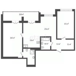 Две изолированные комнаты — 10 м2 и 15,1м2