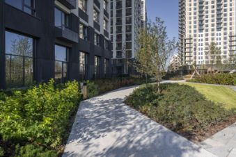 Смысловая ось квартала — широкая главная улица с высаженными вдоль неё высокими деревьями. Они создают тень и работают как шумо- и пылезащитные экраны. Это место сосредоточения основных пешеходных и транспортных потоков, на сторону которых мы ориентировали большинство коммерческих помещений. Отсюда жители могут свернуть на тихие соседские улицы и попасть на внутриквартальную площадь — ещё одну точку притяжения. #Z14boO