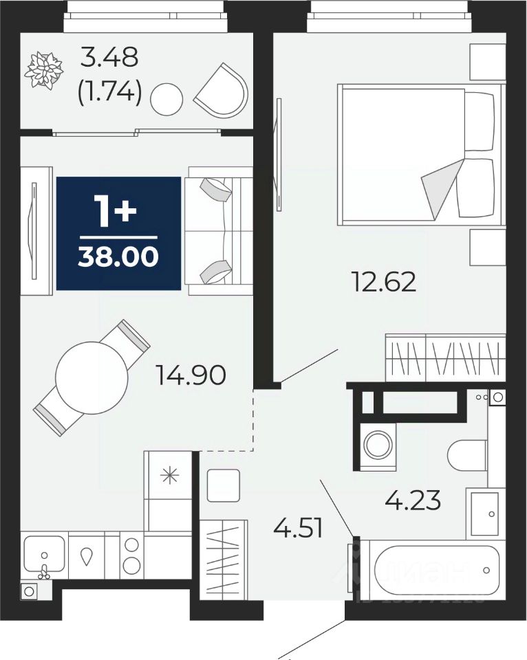 1-комн. квартира с предчистовой отделкой в ЖК "Прео" на 13 этаже. Общая площадь: 38 кв.м., жилая: 12.62 кв.м., площадь просторной кухни-столовой: 14.9 кв.м. Все окна выходят на одну сторону. В квартире одна лоджия, один совмещенный санузел. Высота потолков 2.7 м.
