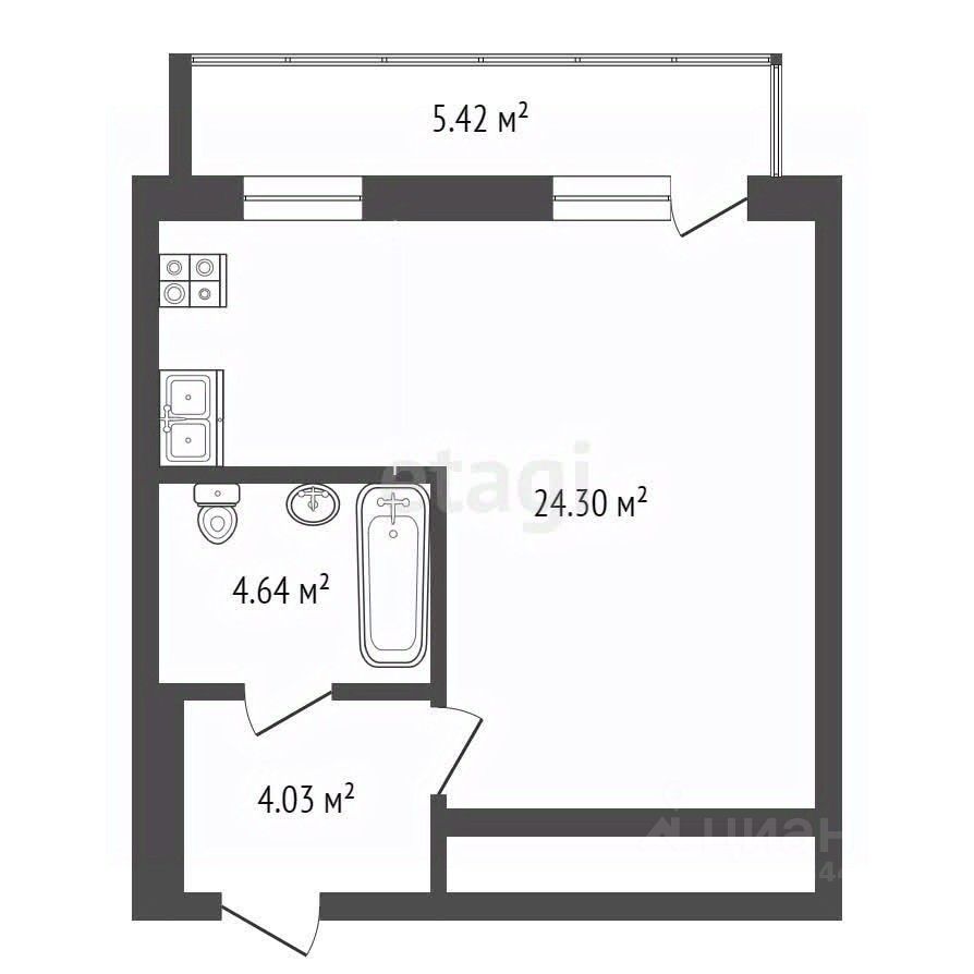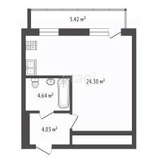 Общая площадь - 33м2 + балкон.