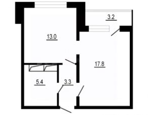 Кухня-гостиная - просторная, 13 кв.м., оснащена также всей необходимой мебелью! Просторная жилая 17,9 кв.м.